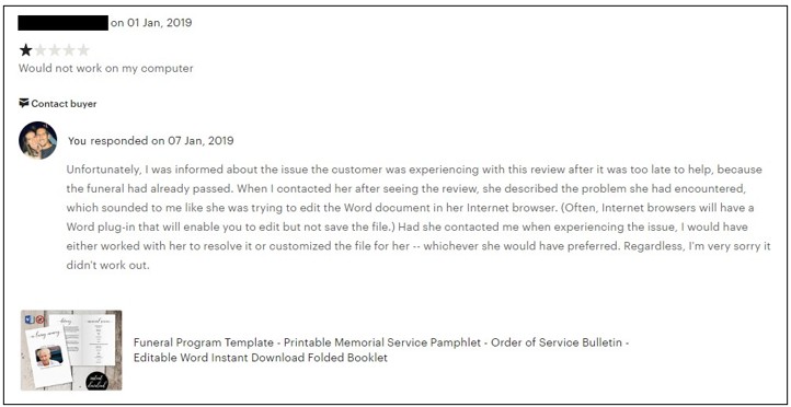 - Address the situation directly. This is the time to share your side of things. Nicely explain the issue from your perspective. Your goal is for a potential customer to hear both sides and agree with you . . . or at least feel your fault is limited enough that they would still patronize your business. I dug up two examples for you of 1-star reviews I’ve received that I felt warranted a response.