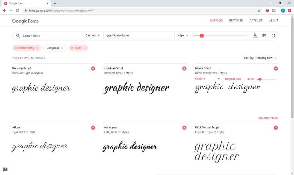 I went out seeking a utility similar to google’s font viewer . . . where I could type in my desired preview text and then browse the available options in an easy-to-see size and easy-to-scroll format.