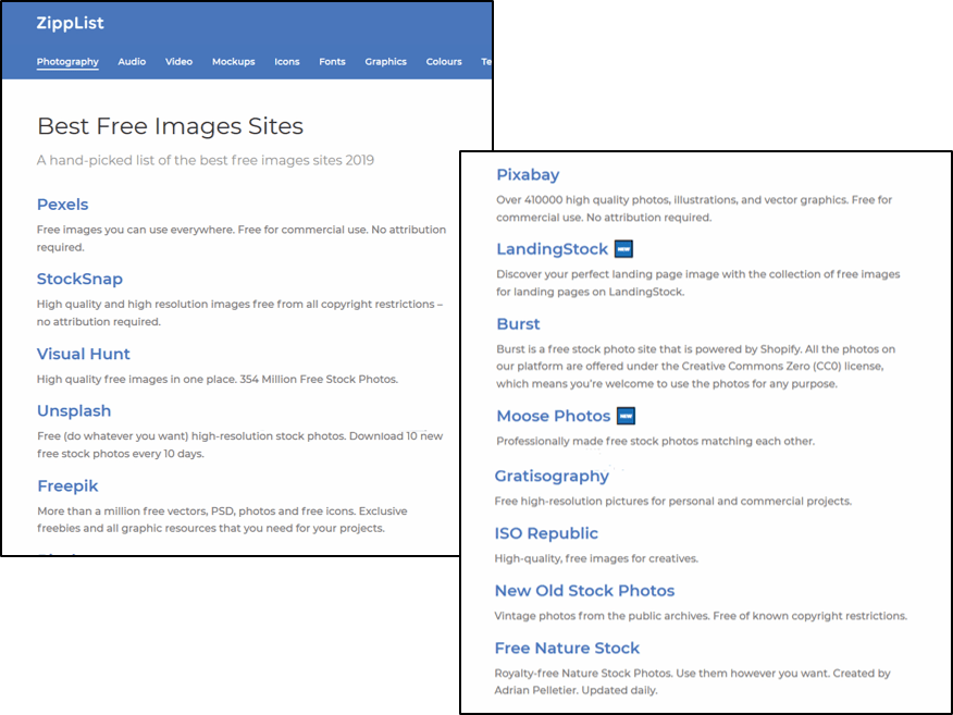 Frankly, the Internet provides access to an unbelievable wealth of image resources. For example, I recently searched for the term: “Best Free Images of 2019.” The following list was produced: