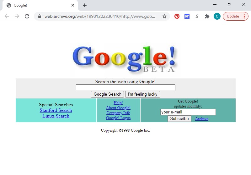 I rememberd Google always being just a logo and a search box, so I was amused to see this early weightier version.
